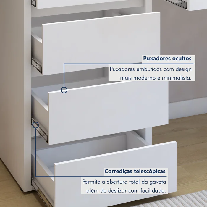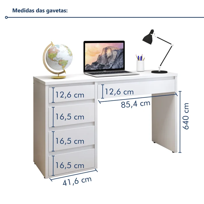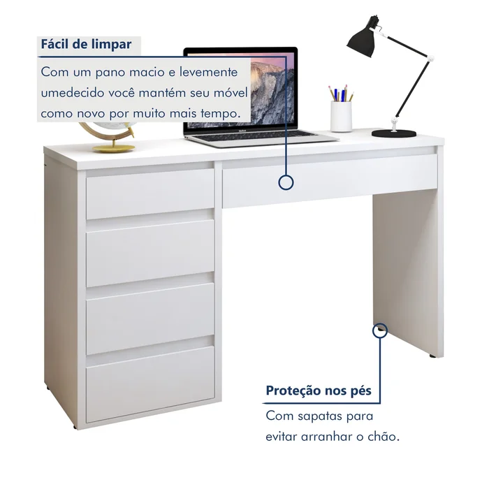 Escrivaninha 5 Gavetas 100% MDF Berlim Yescasa Branco