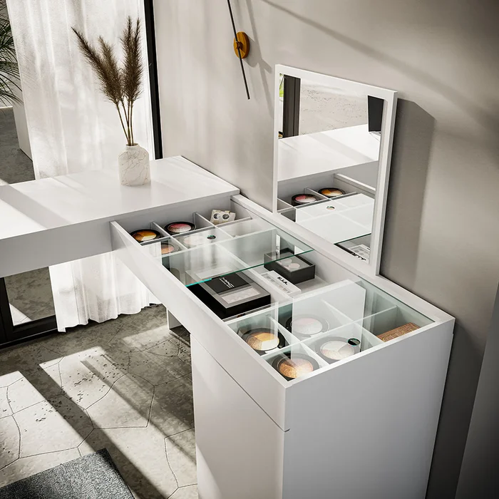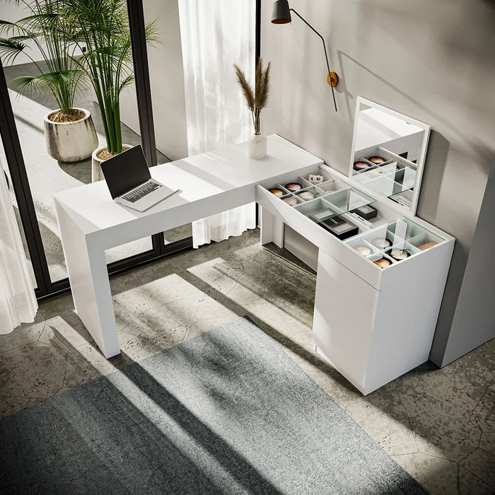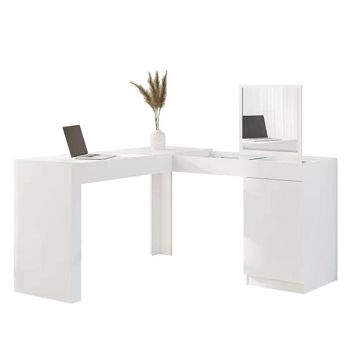 Escrivaninha Penteadeira de Canto 136x136cm com Espelho 1 Porta Star Branco